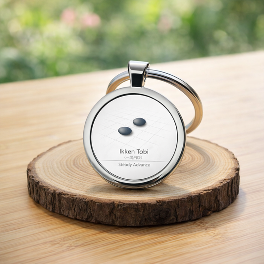 Ikken Tobi Keychain – Steady Advance – Minimalist Go Move – Strategy Gift